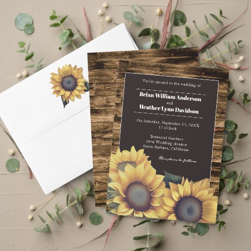 Personalise an elegant welcome sign for your guests with a set of Rustic Sunflower Wedding Welcome Poster. Poster design features a trio of watercolor sunflowers against a wooden rustic background. Additional wedding stationery available with this design as well.