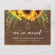 Let your family and friends know you new address with this charming rustic sunflower postcard. The front of the card offers a dark wood background accented with a watercolor graphic of sunflowers and greenery.