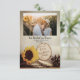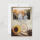 Customize the natural Rustic Sunflower Woods Wedding Save the Date Announcement with the personal names of the couple, marriage ceremony date and photo. This country chic custom woodland or forest inspo nuptial keep the date card features a quaint digitally enhanced nature photograph of a yellow sunflower blossom, wood slices with the words SAVE THE DATE burned on it, brown pine cones and white bridal veil with a burlap and white satin background. The San Telmo filter has been added for additional effect. Feel free to remove or replace it to suit your needs.