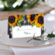 Rustic sunflowers and lights wedding table place card