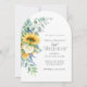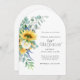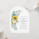 In charming boho style, this lovely birthday party invitation celebrates a milestone 60th birthday. The age can be personalised for any age! The design features an arch shaped card stock with a carefree bouquet of yellow sunflowers and white roses with trailing eucalyptus greenery cascading along the left side of the invitation. The style conveys a casual rustic charm and the happiness and joy you feel on your birthday, especially when celebrating with friends and family. This invitation is a wonderful choice for summer or fall birthdays when sunflowers are abundant. Personalise the text template with your event details.