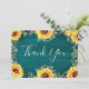 Rustic Sunflowers Babys Breath Border Teal Wedding Thank You Card