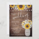 Rustic Sunflowers Babys Breath Jar Lights Wedding Invitation