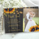 Elegant chic summer or fall wedding stylish thank you card template on dark brown barn wood featuring beautiful sunflowers bouquets, strings or twinkle lights, and a chic faux gold calligraphy script. ++++++++++++++ Easy to personalise with your details and photo! +++++++++++ Suitable for elegant summer or autumn fall rustic country outdoor backyard or barn weddings.