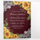 Rustic Sunflowers Burgundy Wood QR Code Wedding Tri-Fold Invitation