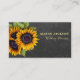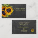 Rustic modern style business card featuring a big sunflowers bouquet and gold trendy typeface typography script on a dark grey charcoal chalkboard background. ++++++++++++ Suitable for rustic wedding planners, gardeners, landscape designers, florists, photographers.