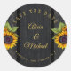 Rustic sunflowers chic barn wood wedding save date classic round sticker