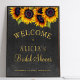 Elegant fall bridal shower stylish welcome sign poster template on dark grey chalkboard featuring a beautiful sunflowers bouquet. Easy to personalise with your details. You can choose to customise it further changing fonts and colours of lettering.+++++++++ It is suitable for elegant summer or autumn fall rustic country garden backyard wedding shower parties.
