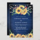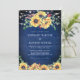 Rustic Sunflowers Lights Navy Blue Wood Wedding Invitation