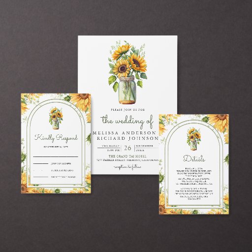 Rustic Sunflowers Mason Jar Wedding Save the Date Acrylic Invitations