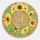 Rustic Sunflowers Monogrammed Burlap Classic Round Sticker