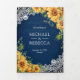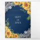 Rustic Sunflowers Navy Blue Wood QR Code Wedding Tri-Fold Invitation