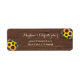 This rustic country design features yellow sunflowers, navy blue roses and white baby's breath against a dark brown wood background. The customisable name and return address appears in golden white in popular script and serif typography. You can personalise this label by changing the text in the template.