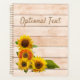 All the tough beauty of sunflowers bunched on a corner of a rustic wooden background. The design contains muted ochres, bright vibrant yellows, pink and green