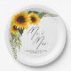 Rustic Sunflowers Script Mr. and Mrs. Wedding Paper Plate