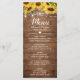 Rustic Sunflowers String Lights Wedding Menu Card.