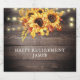 Rustic sunflowers and string lights wood background retirement party sparkling wine labels for your first toast at the retirement party. Toast to your freedom and free time to do all that you love to do!