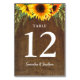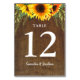Add these rustic table number cards to your wedding reception tables. The design features a beautiful watercolor graphic of sunflowers and greenery that appears across the top of the card. Custom text allows you to add the names of the bride and groom and their wedding date.