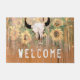 Rustic Sunflowers Western Cow Skull Welcome Doormat