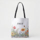Rustic Sunflowers and Wildflowers Watercolor Painting Design Gift Tote Bags with personalised name | text. A perfect gift for your Bridesmaids, as Bridal Shower Favours , Bachelorette Party Favours