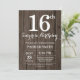 Rustic Surprise 16th Birthday Invitation. Rustic Wood Background. Vintage Retro Birthday. Kids Birthday. Boy or Girl Bday Invite. 13th 15th 16th 18th 20th 21st 30th 40th 50th 60th 70th 80th 90th 100th, Any age. For further customisation, please click the "Customise it" button and use our design tool to modify this template.