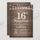 Rustic Surprise 16th Birthday Invitation with String Lights Wood Background. 13th 15th 16th 18th 21st 30th 40th 50th 60th 70th 80th 90th 100th, Any age. For further customisation, please click the "Customise it" button and use our design tool to modify this template.
