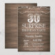 Rustic Surprise 30th Birthday Invitation with Rustic Wood Background. String Lights. Country Vintage Retro. Adult Birthday. Male Men or Women Birthday. For further customisation, please click the "Customise it" button and use our design tool to modify this template.