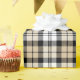 This classic holiday wrapping paper design features a rustic kraft tan, white, and black watch Scottish tartan plaid patterned background.