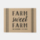 Welcome guests to your farmhouse abode with this charming rustic doormat. Personalized design features "farm sweet farm" in black lettering with your family name and year established beneath. Rope stripe detailing on a classic tan background completes the design.