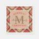 Rustic Tan Red Tartan Plaid Christmas Monogram Napkin