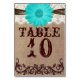 Rustic Teal Daisy Wedding Table Number Card with a vintage distressed background and printed lace and printed twine bow design with an aqua teal daisy flower at the top. Perfect for a rustic country wedding. Just change the number for each table card.