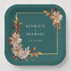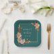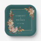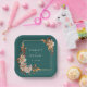 Rustic Teal Fall Paper Plates. Make even casual bites feel intentional with these square paper plates from the Teal Terracotta Fall Leaves Floral Collection. Featuring warm watercolor florals—terracotta and burnt orange leaves, beige dahlias, and copper roses—on a striking teal backdrop, these plates combine function and seasonal flair. Their unique shape adds a modern twist, making them perfect for stylish receptions, dessert tables, or cocktail hours. Customise yours for a polished final touch.