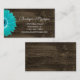 Rustic Teal Gerber Daisy Business Cards on a dark barn wood background. The turquoise flower really stands out against the dark background.