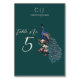 These Rustic Teal Green Peacock Wedding Table Numbers feature a hand-drawn blue and teal blue peacock perched on Magnolia branches in full bloom in black ink. Personalise with bride and grooms' monogram, names and table number by clicking on "Personalise this template" on the product page.