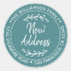 These Rustic Teal New Address Round Labels feature a charming handwritten script, leafy accents, and a bold circular layout that highlights your new contact information. Perfect for mailing moving announcements, updating return address information, or sealing envelopes with a stylish personal touch. Easily customize with your family name and new address.