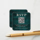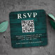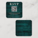 Rustic teal RSVP QR code business card.