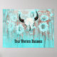Rustic Teal Western Bull Skull Sunflowers On Wood Poster