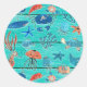 Rustic Teal Wood & Under the Sea Friends Whimsical Classic Round Sticker