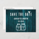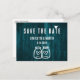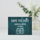 Minimalist rustic wedding save the date postcard with modern calligraphy ideal for a teal rustic country/backyard/barn wedding party.