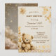 Set the tone for a cosy and heartfelt celebration with this teddy bear baby shower invitation. Surrounded by golden stars and autumn leaves, this design was inspired by the warmth of nature and childhood wonder. A timeless way to invite loved ones to a magical day!