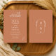 The minimalist typography and soft botanical accents keep the design elegant and timeless, while the terracotta background adds warmth and personality. Personalize all wording, names, dates, and venue details to match your wedding style.