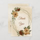 Unique wedding thank you card featuring romantic rustic terracotta flowers and green leaves.