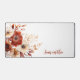 Rustic terracotta floral desk mat with name. Easy to change the text. Trendy watercolor autumn botanical.