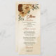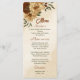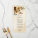 Unique wedding menu card featuring romantic rustic terracotta flowers and green leaves.