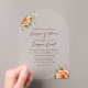 Make a statement with these unique arched acrylic wedding invitations, designed for couples seeking a rustic and elegant touch. Featuring soft terracotta florals, pampas grass, and elegant calligraphy, this invitation beautifully captures the essence of a bohemian-inspired celebration. The arch shape adds a distinctive modern flair, while the acrylic material enhances its sophistication. Perfect for fall weddings or nature-inspired themes, these invitations set the tone for a romantic, earthy celebration. Customize the details to create a lasting impression for your special day.