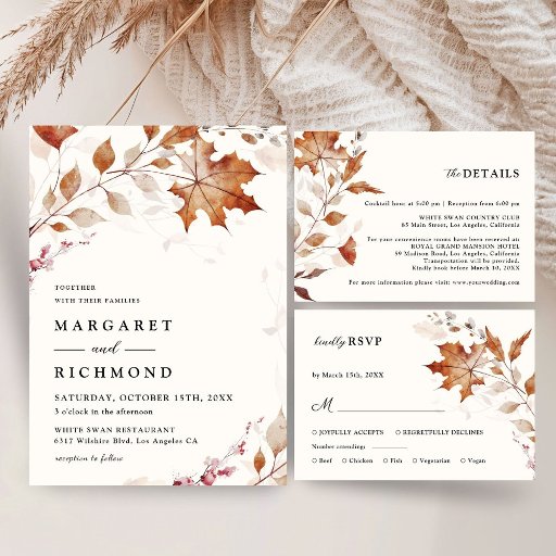 Rustic Terracotta Leaves Watercolor Fall Wedding Invitation