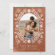 Celebrate your love with this rustic terracotta wedding Save the Date Card featuring an intricate floral design. Perfect for a boho-inspired wedding. Matching items in our store Cava Party Designs.