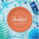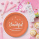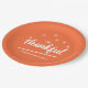 Rustic Thanksgiving Thankful Custom Family Name Cute Orange Paper Plate. Click personalised this template to customise it with your family name quickly and easily. Ships Worldwide fast.