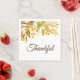 These modern Thanksgiving napkins are decorated with watercolor fall leaves in autumn colours and the word "Thankful" in stylish dark brown script typography.