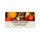 Address labels with a photograph of a thanksgiving harvest, set on a rustic wooden table. Pumpkin, potatoes, squash etc... make up this bountiful collection of food.